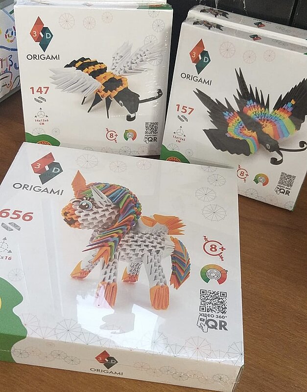 Das Origami ist die Kunst des Papierfaltens. Ausgehend von einem zumeist quadratischen Blatt Papier entstehen durch Falten zwei- oder dreidimensionale Objekte wie Tiere, Papierflieger, Gegenstände und geometrische Körper.